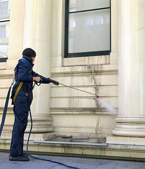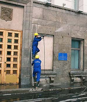 Подбираются чистящие вещества и техника, выполняются работы по мойке конструкций.